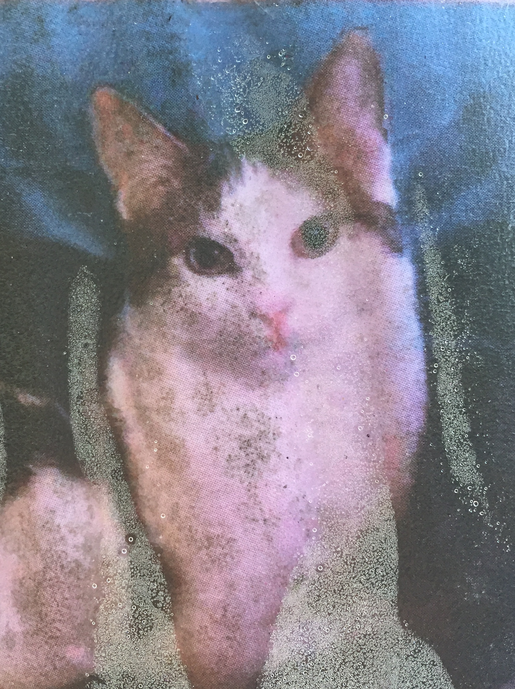 irl, the portraits are printed on shiny photo paper with the names written by needle.